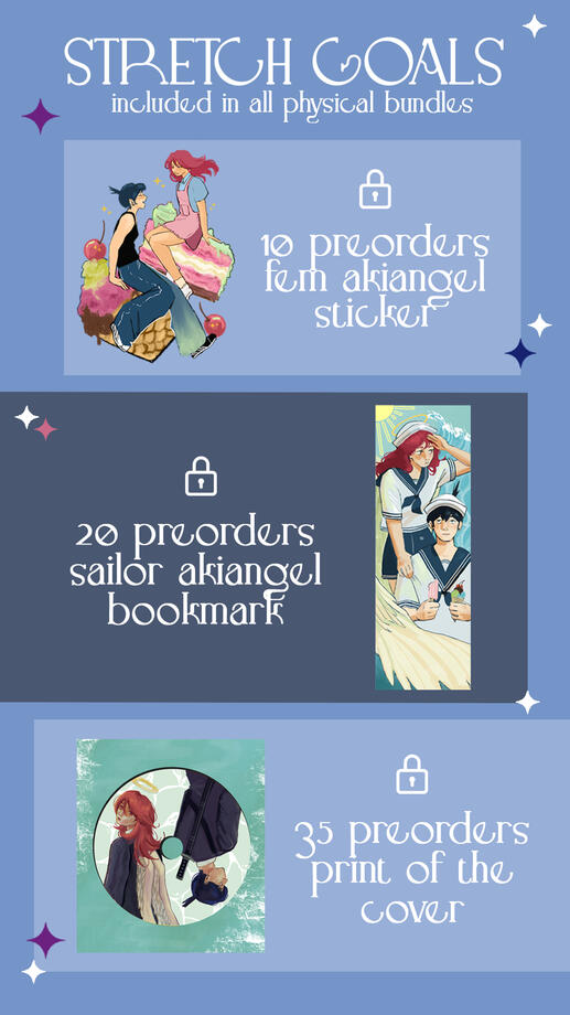 Songs we will never share is a SFW fanmade project that ventures in the relationship between Aki and Angel through different scenarios, canon and alternative. Around seventy pages containing a compilation of fanfics and fanarts made by us!The structure of the fanzine is divided in three parts with a prompt that sets the tone for every chapter: